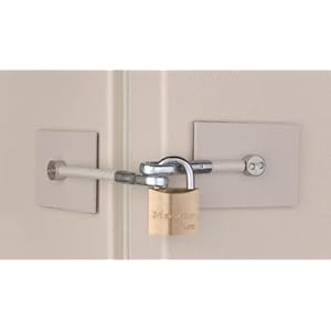 Lockitdown(tm) Refrigerator Door Lock Kit Lock the Refrigerator tight using a top quality locking kit from Marinelock LLC. This kit includes 2 Door Kit Cables that adhesively attach on the Refrigerator with 3M VHB adhesive. (NO DRILLING REQUIRED!) Once attached these pads require several hundred pounds of force to remove. A top quality brass padlock is included inside the kit. Easy install for the office break room, dorm room or RV. Lock and control usage of food, drinks, medication. Also creates Chest Freezers, Lockers , RV's, Boats.