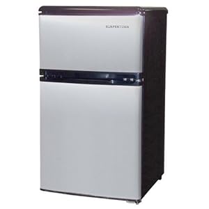. If you're want to buy With its 3-1/5-cubic-foot capacity, this compact double-door refrigerator works great for any dorm room, office, or bar area, or through the holidays when extra space is available in handy. The lower refrigerator compartment provides a slide-out wire shelf plus a transparent vegetable storage drawer with a glass shelf, and also a can dispenser, space for storage for small items, plus a tall-bottle rack within the door. The separate freezer compartment up top supplies a roomy interior, an ice-cube tray, and space for storage in the door. The adjustable temperature to the freezer compartment ranges from 5 to 23 degrees F, while the refrigerator compartment can be set from 35 to 59 degrees F. In addition, the unit's reversible doors may be attached to open from either the left or the proper side, and it is front leveling legs ensure it is all to easy to stabilize even by using an uneven surface. Other details include manual defrost, low-energy consumption, HCFC-free operation, and a space-saving flush back design. The UL-listed freestanding refrigerator measures 20-2/3 by 18-2/3 by 33-2/3 inches and includes a one-year limited warranty.